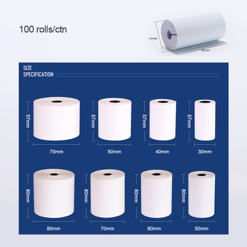 Thermal Printer 58mm Paper Roll 57x30mm Cash Register Receipt 57×25 Paper Till Rolls Thermo Termico De PaperAvailability: 3000 in stock (can be backordered)